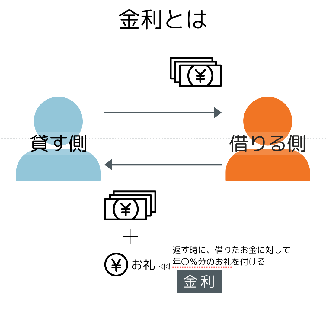 金利は、一言でいうと「お金を貸し借りするときのお礼」です。